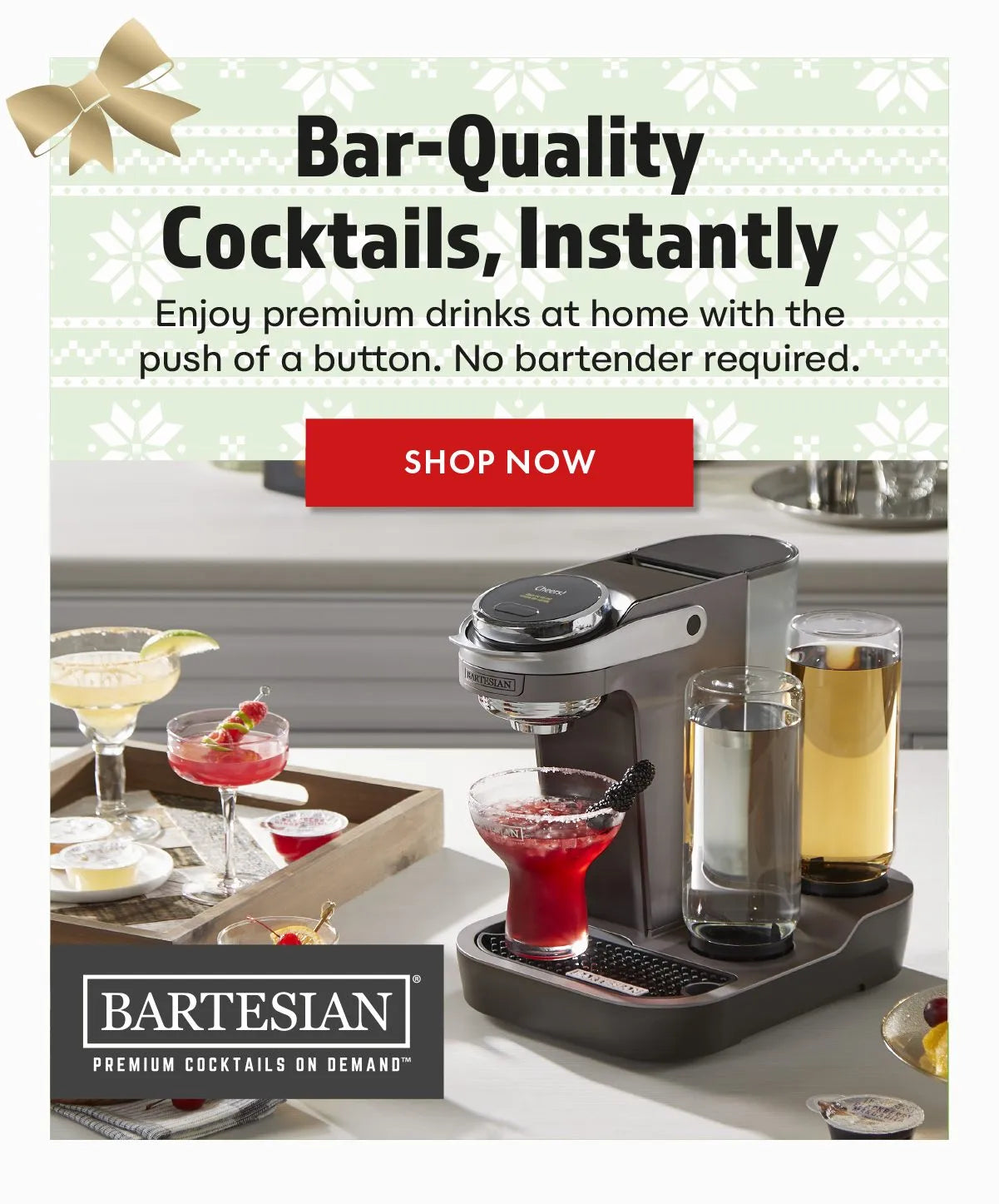 A cozy twist on a classic—bold whiskey balanced with orange, cinnamon, and brown sugar. Find it in the Bartesian Holiday Collection.